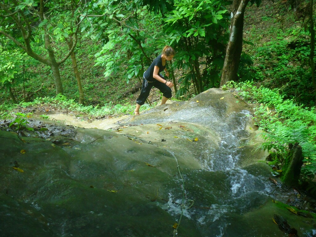 The most interesting waterfall is Buatong a.k.a. Sticky waterfall. Sticky because you can walk and climb on it all the way from bottom to the top. Yes, I know, it's hard to believe and my reaction was the same. But because of the nature of here's limestone, the rocks are not slippery but kind a rough. It takes some time to get used to the fact that you can step on a dangerous looking stones. But the grip is strong and there is no worries to slip. You have to be a bit careful only about the parts covered with algae.