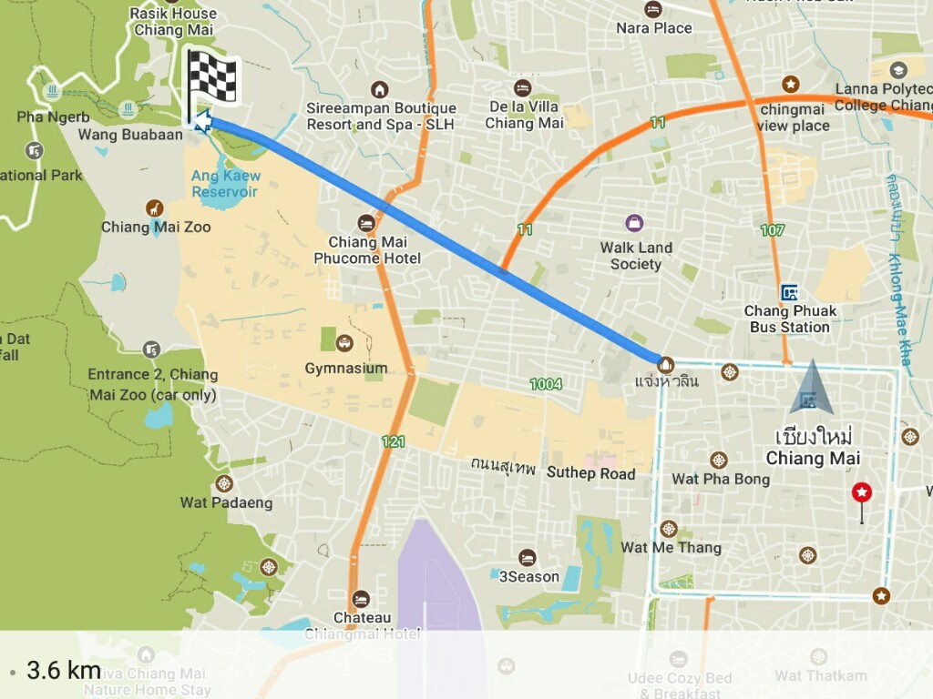 After passing the ZOO the road starts to go uphill. Soon you will get to a big crossroads with signs telling you to turn left for Huay Keaw.