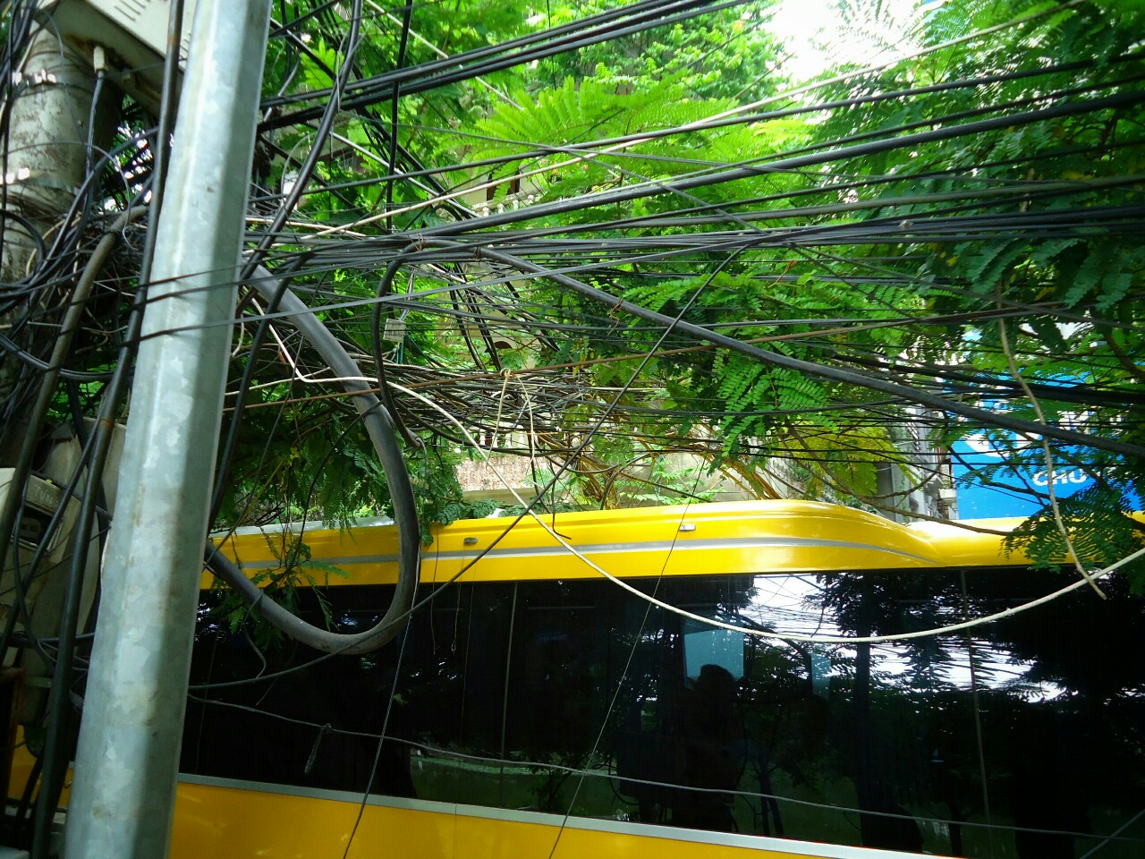 Kot elektrotehniku mi je vedno zanimivo, ko vidim kakšno zmedo uspejo narediti s telefonskimi kabli. Vsake toliko jih potrga kak avtobus...
