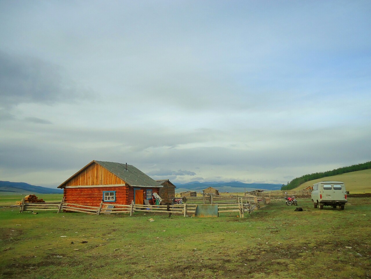 Izkaže se, da to čemur v Mongoliji rečejo podeželje, bi jaz poimenoval: sredi ničesar. Kakšno uro in pol smo se vozili po brezpotjih, nakar smo prispeli do takšne hišice (slika spodaj).