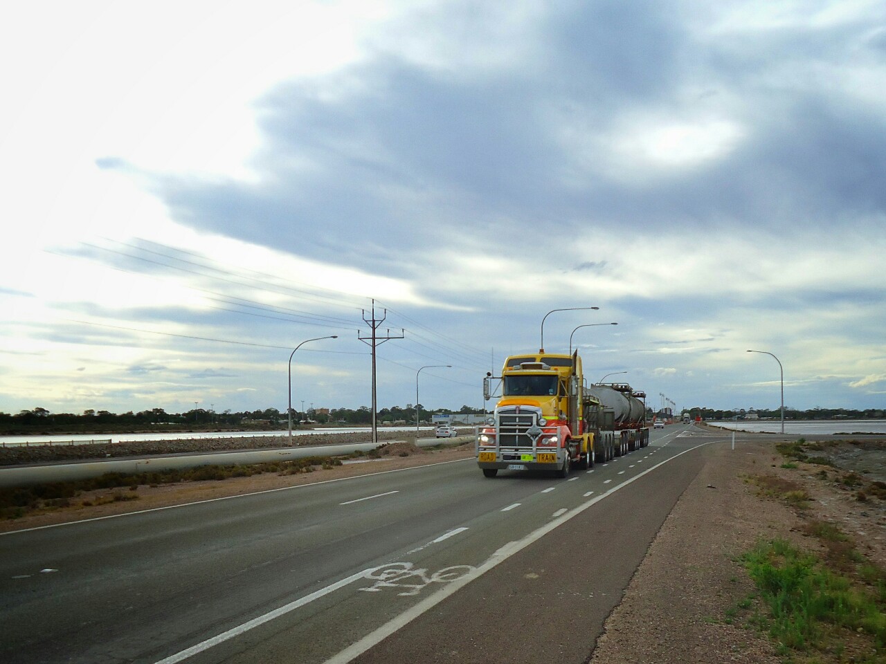 Druga stvar, ki sva jo srečevala, pa so cestni vlaki (dobesedni prevod iz angleškega izraza: Road Train.) To so tovornjaki, ki za seboj vlečejo več prikolic. Večina je takšnih, z dvema. Najdejo se s tremi. Zakonsko pa je dovoljeno vleči do vključno pet priklopnikov. Takemu tovornjaku si ne želiš vzeti prednosti!