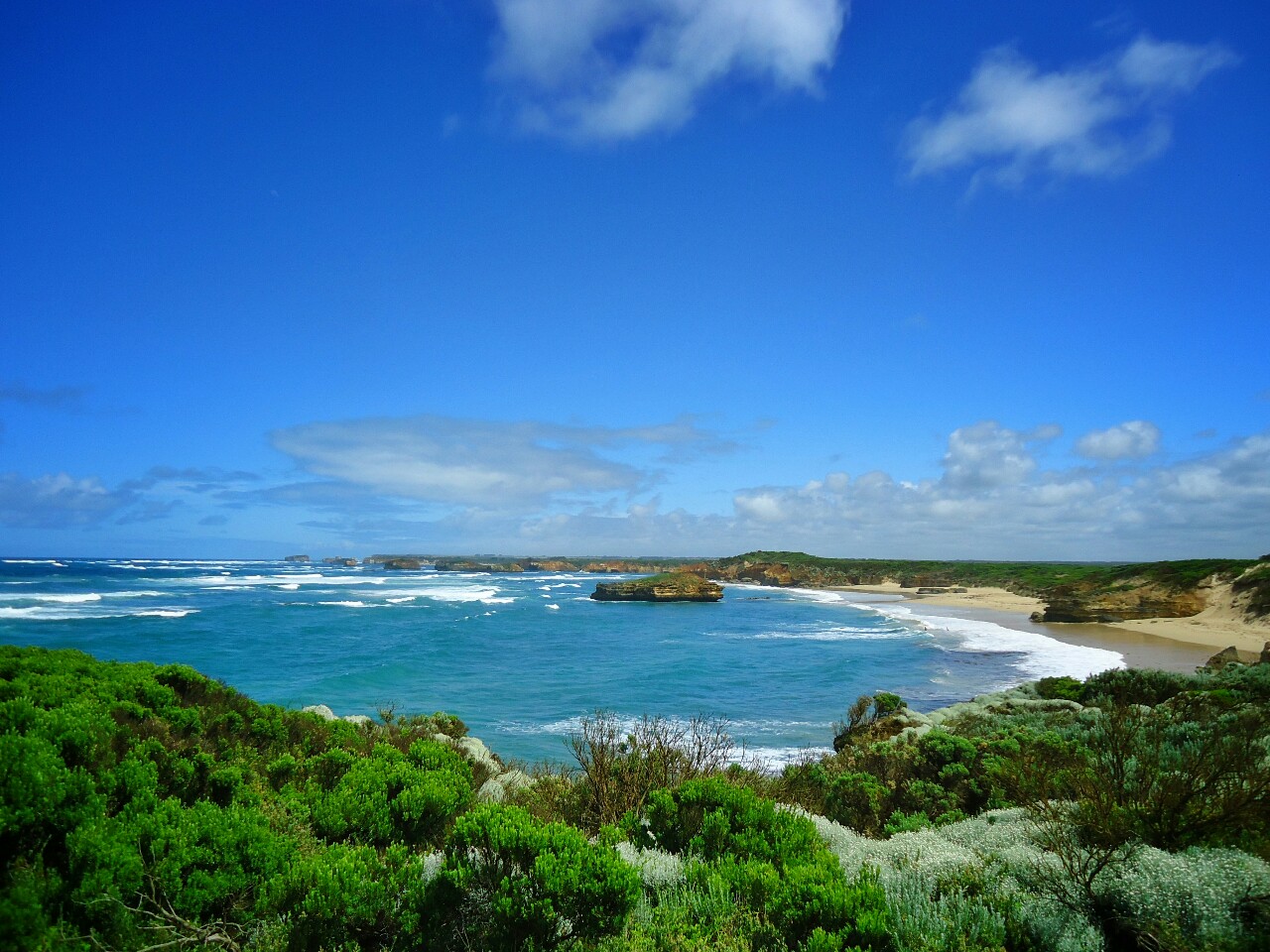 Njena glavna atrakcija - Dvanajst apostolov. Številke ne grejo skupaj, ampak to je osem apnenčastih škrbinastih skal, ki molijo iz vode. Apnenec in voda sta strastna, samo-uničevalna kombinacija. Iz enakega razloga, kot so nastali, tudi propadajo. Propadajo tako hitro, da utegnejo v času enega človeškega življenja postati zgodovina. Deveti se je zrušil dobrih deset let nazaj.