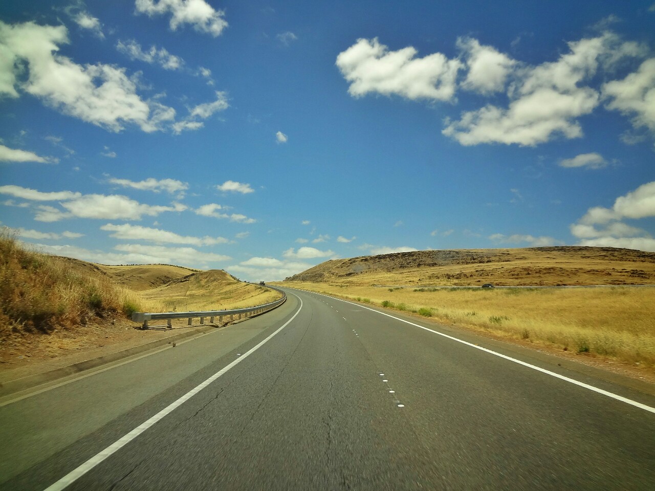 Hitro sva se podala na pot (po levi strani, seveda) in se kmalu znašla na samotni cesti čez pusto in samotno pokrajino. Ta naju je spremljala naslednjih pet dni.