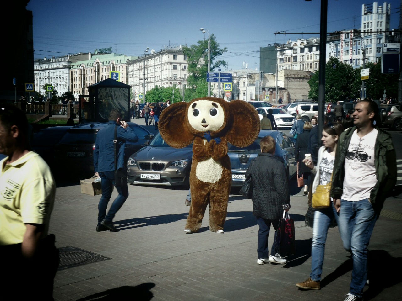 Ko sem bil v Moskvi je bil ravno čas svetovnega prvenstva v hokeju v Rusiji. Neke vrste neuradna maskota prvenstva je tudi Čeburaška, lik iz starejših ruskih risank.
