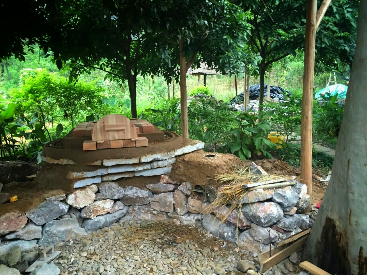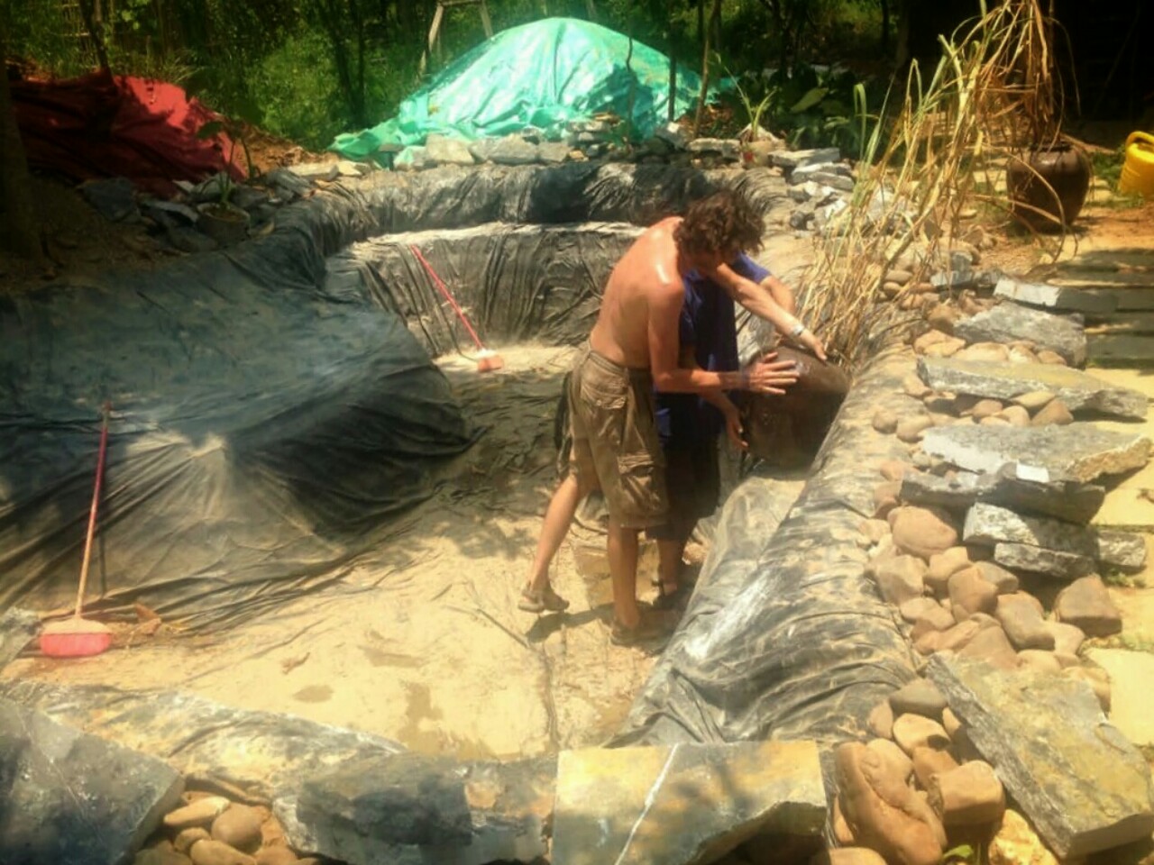 Moje delo je bilo fizično, ampak nič hudo napornega. Glavna projekta sta bila dva. Dokončanje ribnika in izgradnja glinene krušne peči. Dodatno sem bil še glavni šofer na taki mašinci, kot jo vidite na sliki spodaj levo :) Glede na to, da sem postanek tukaj podaljšal vse do predzadnjega dneva pred potekom vize, lahko sklepate, da sem se odlično počutil.