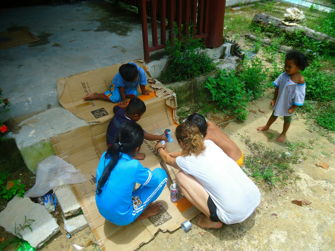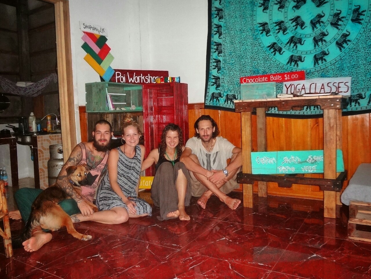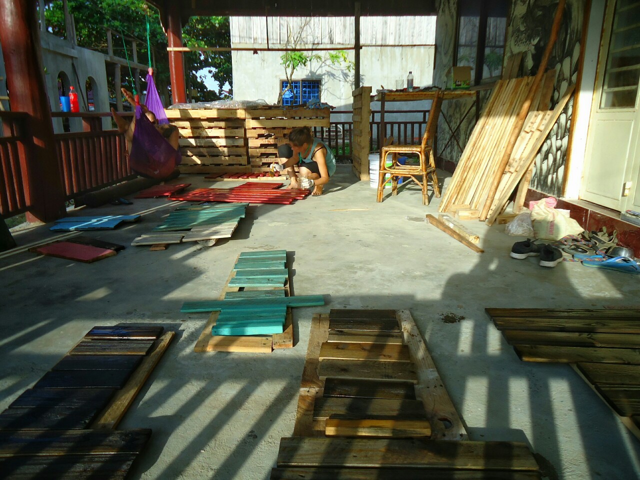 Kaj to pomeni? Po malem smo uganjali norčije, vmes pa se ukvarjali še z izdelovanjem pohištva iz palet, raznih tablic, sajenjem arašidov, ananasov in podobnega čuda. Pomagala sva pri hišnih opravilih in nasplošno pri organizaciji projekta.