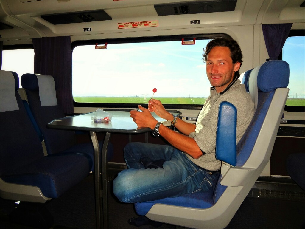 Nisem polagal pozornosti, ko se je mimo mene premaknila ženska postava. Počasi se je prebijala po koridorju med sedeži od začetka do konca vagona. Pred vsakim potnikom je na mizico položila manjši paket. Še vedno nisem polagal pozornosti.